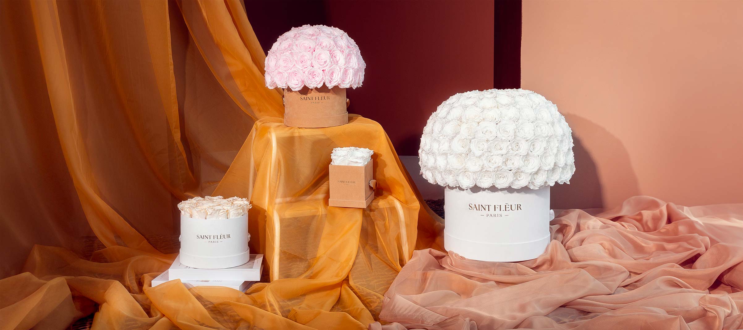 Ja, we maken graag persoonlijke bloemstukken om aan je specifieke wensen te voldoen, inclusief letters, symbolen, patronen of de kleurencombinaties van je voorkeur. Neem voor maatwerk ten minste een week van tevoren contact met ons op via contact@saintfleurparis.com. Elke bestelling bevat ook de optie om een persoonlijk kaartje mee te sturen.